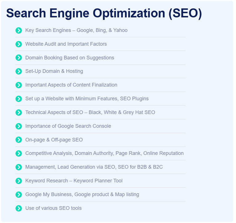 Our program begins by guiding you to create your own website and set up essential performance-tracking tools like Google Analytics. You’ll gain real-time experience through live campaigns and real-world projects, empowering you to engage your audience effectively and grow your online presence from day one.